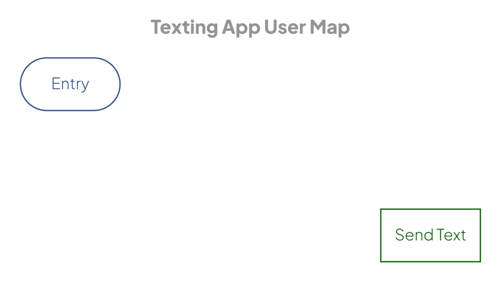With a goal in mind, the next question is: How does the user get there? To show where the user is going, draw a box around the goal. For the texting app, the box would say “send text”. A destination is great, but a user cannot navigate with it alone. Like a GPS, knowing how to get the user to the goal requires knowing where the user is starting. In the top left corner, write “entry” and circle it. This will be the user’s starting point.